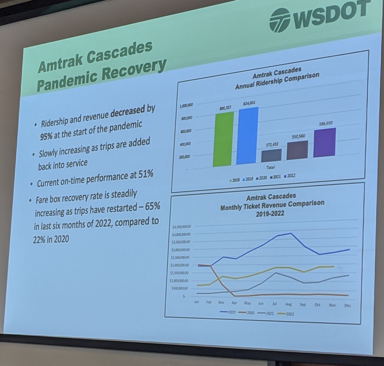 - The return of Amtrak Cascades to Vancouver, B.C. and continued planning for high- speed rail — Jason Beloso, WA State Department of Transportation Rail Office